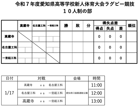 | 名古屋高校 | D | 15:40 | ||||||||