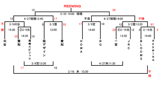 | REDWING | ●12-35 | ○22-14 | ○24-19 | ○56-21 | ○35-26 | ○12-8 | 5-1 | 3位 | |||