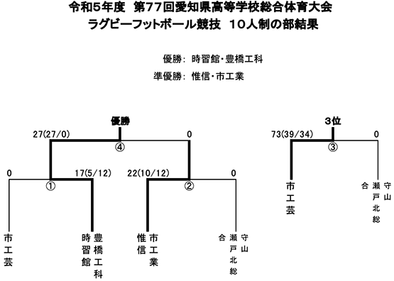 7 | 14:00 | 名古屋工科 | 54 | 26 | 0 | 5 | 惟信・瑞陵・中村・名古屋市工業 | |
