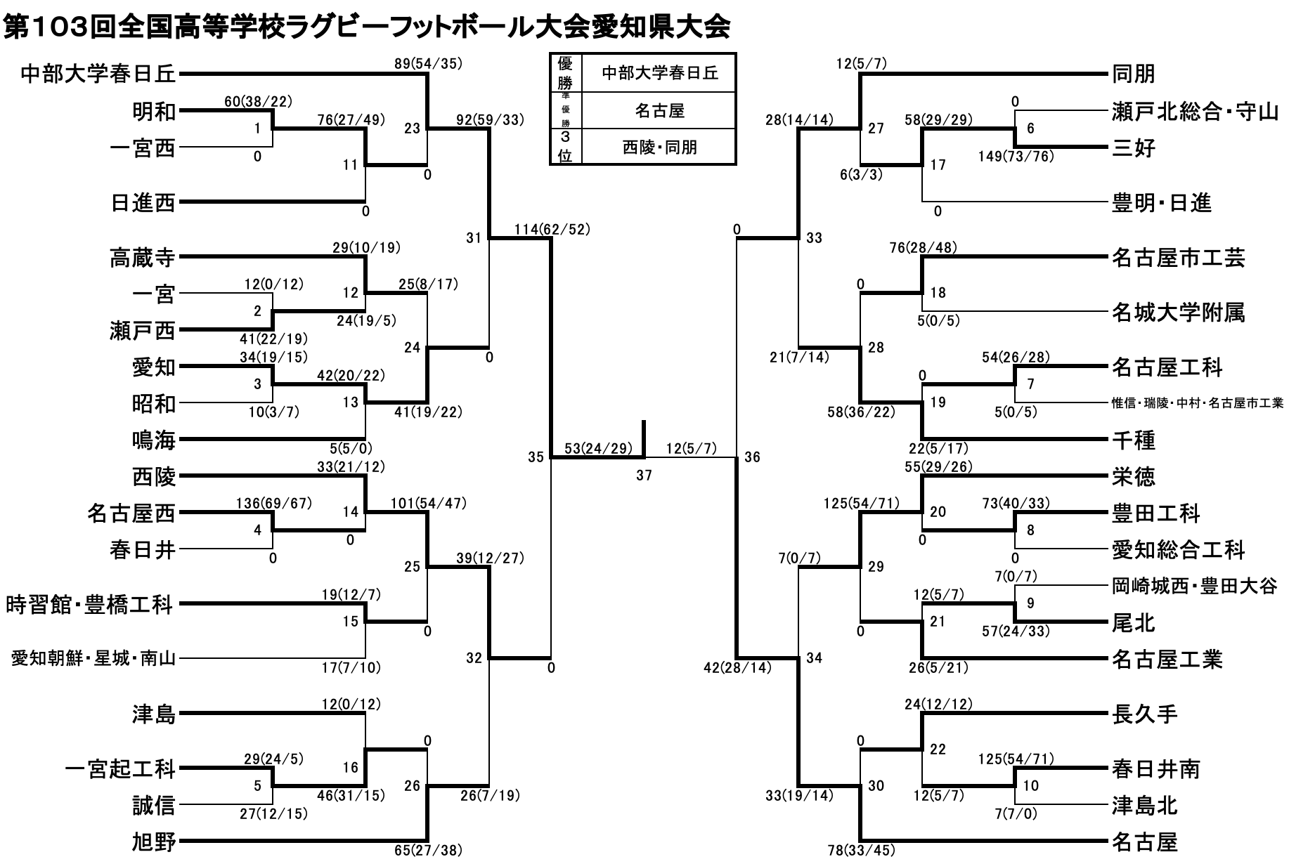 | 31 | 10:30 | 中部大学春日丘 | 92 | 59 | 0 | 0 | 愛知 | ||
