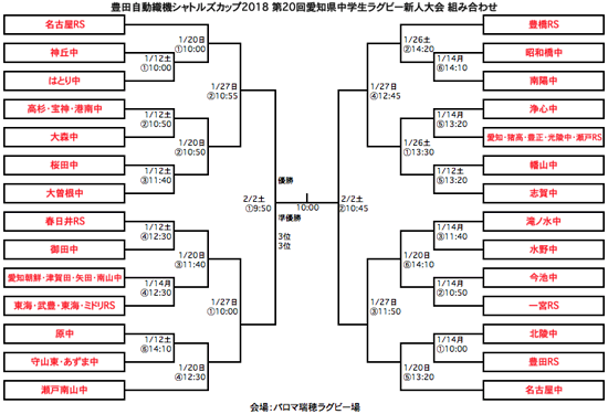会場:瀬→瀬戸市民G 中→中川学校体育センター 天→天白学校体育センター