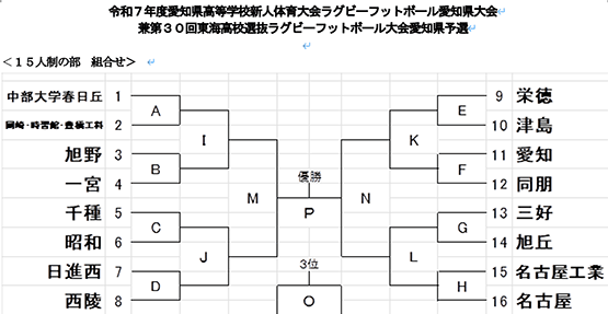 | 15人制 | 会場 | 番号 | 時間 | チーム名@ | スコア | 前半 後半 |